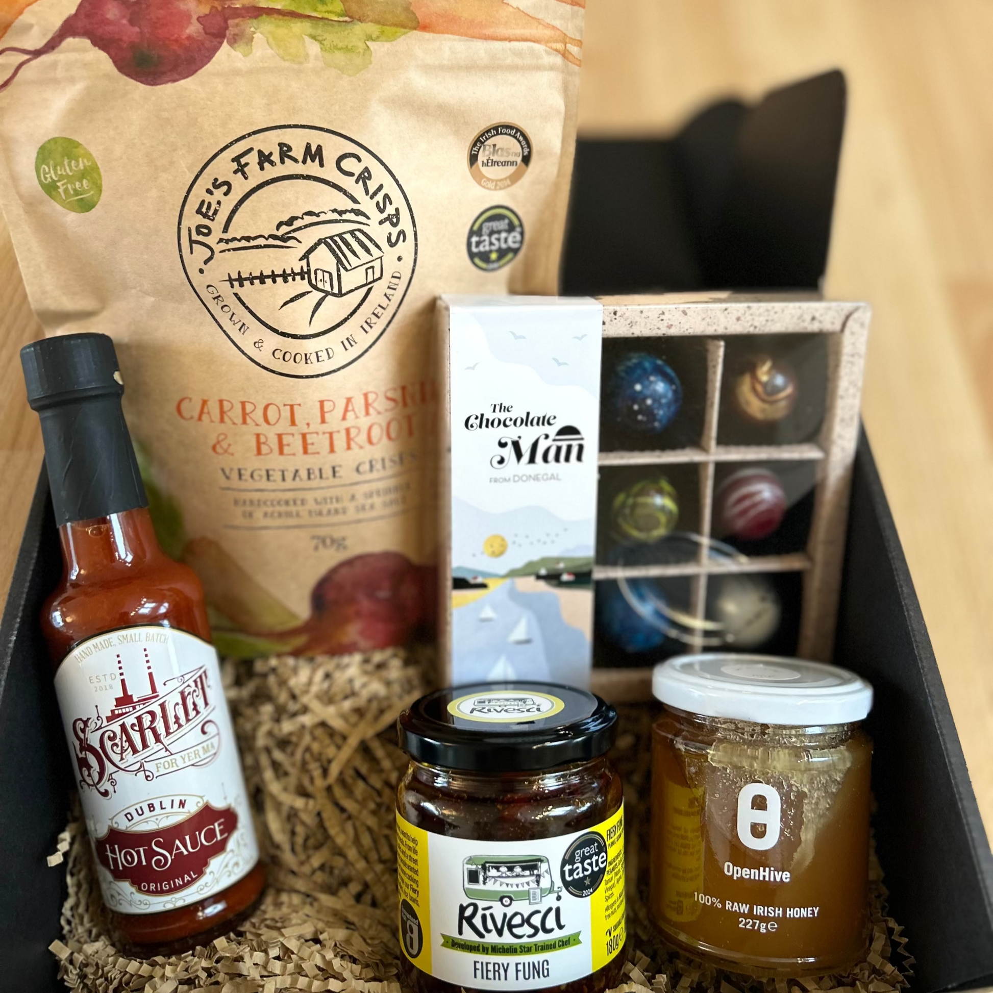 Meet The Bunús Box — five hand-picked Irish food products made by small producers, from Donegal to Clonmel. Chilli oil. Rooftop honey. Chocolates. Crisps. Hot sauce. Unforgettable flavour.